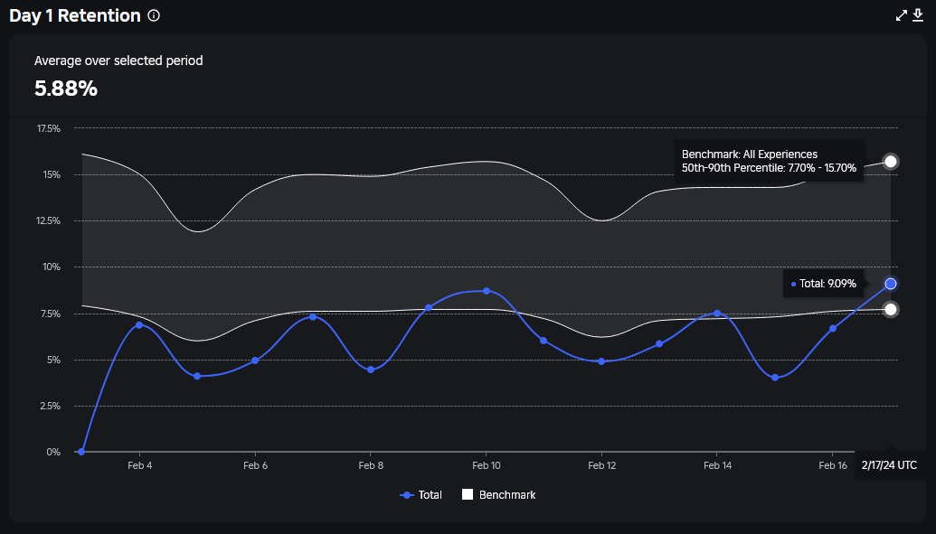 Obby in a Ball released on February 3, 2024 and $20 USD of daily advertising was run for a 2-week period. Starting with an average session time of 5.3 minutes and D1 retention of 6.85% on day 1, drastic changes to gameplay and the new user experience were needed in order to be recognized by the Roblox recommendation system.